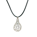 Sterling silver wire cage hand-crafted to display a crystal of your choosing inside. It opens at the top with the necklet threading through to keep the crystal inside secure. Comes with an amethyst crystal and thong necklet.